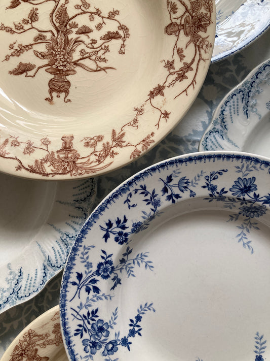 DE FAMILLE vous propose de découvrir des services de table uniques en Terre de Fer, et a sélectionné pour vous ses plus belles compositions d'assiettes anciennes.