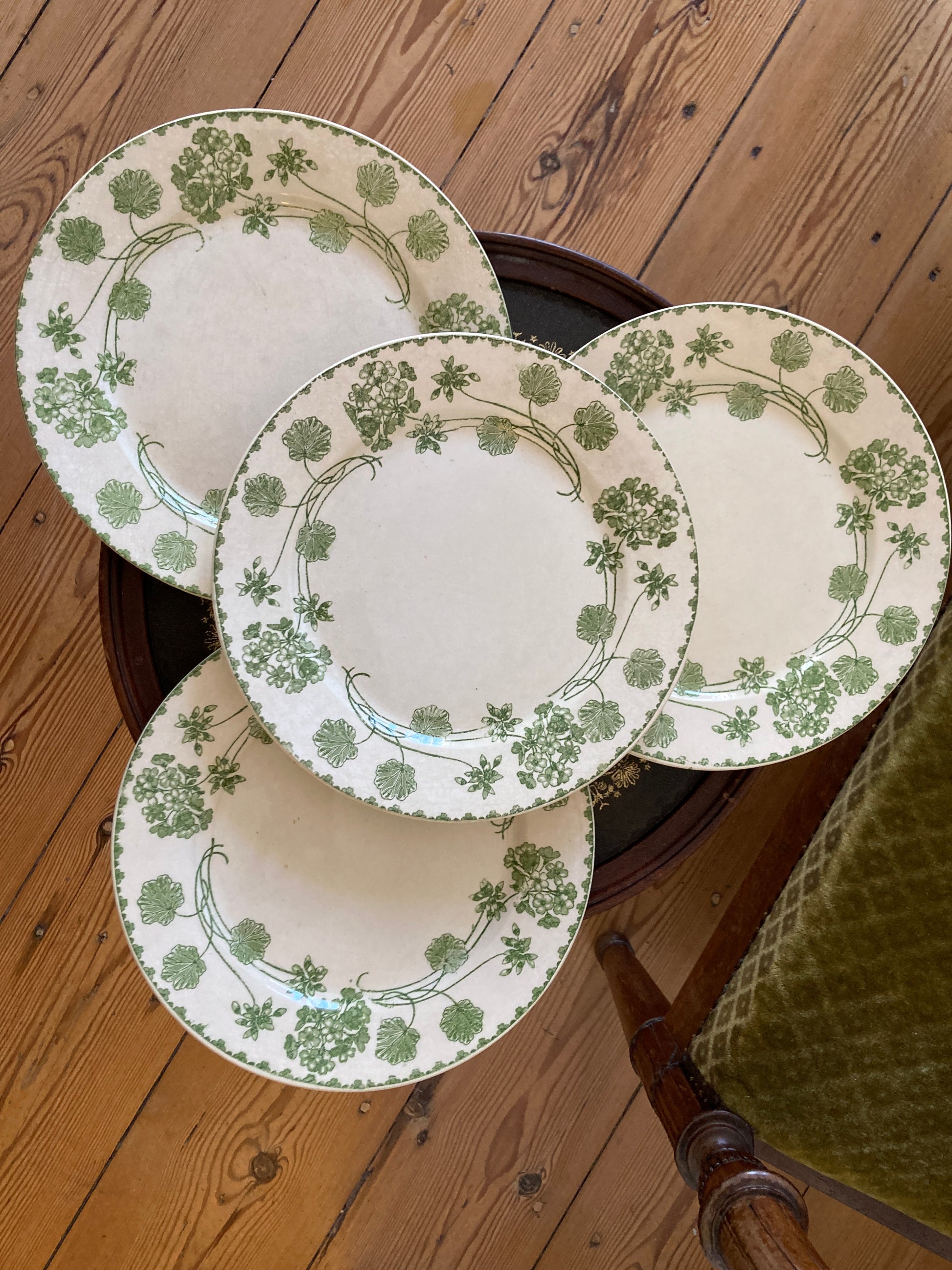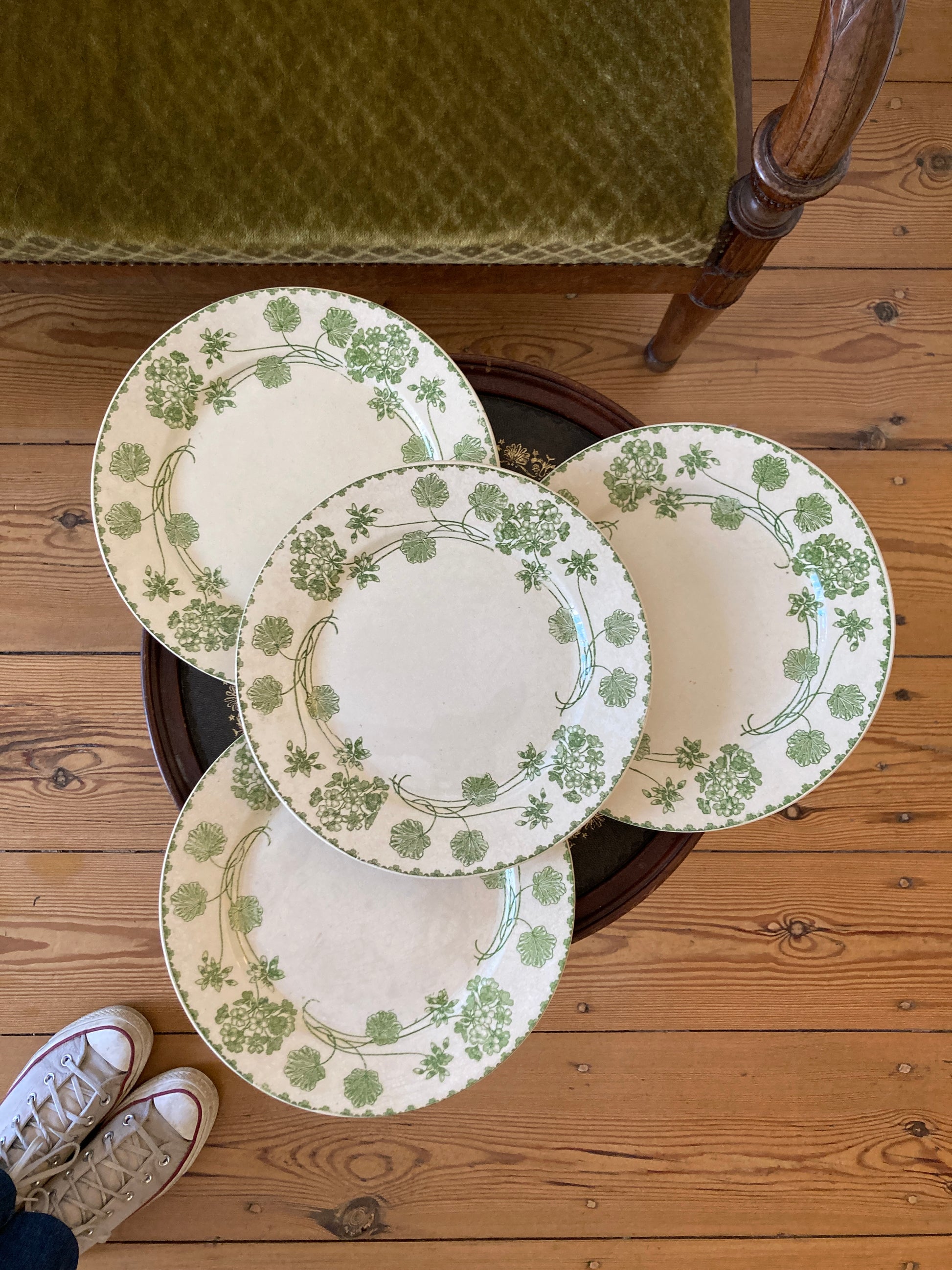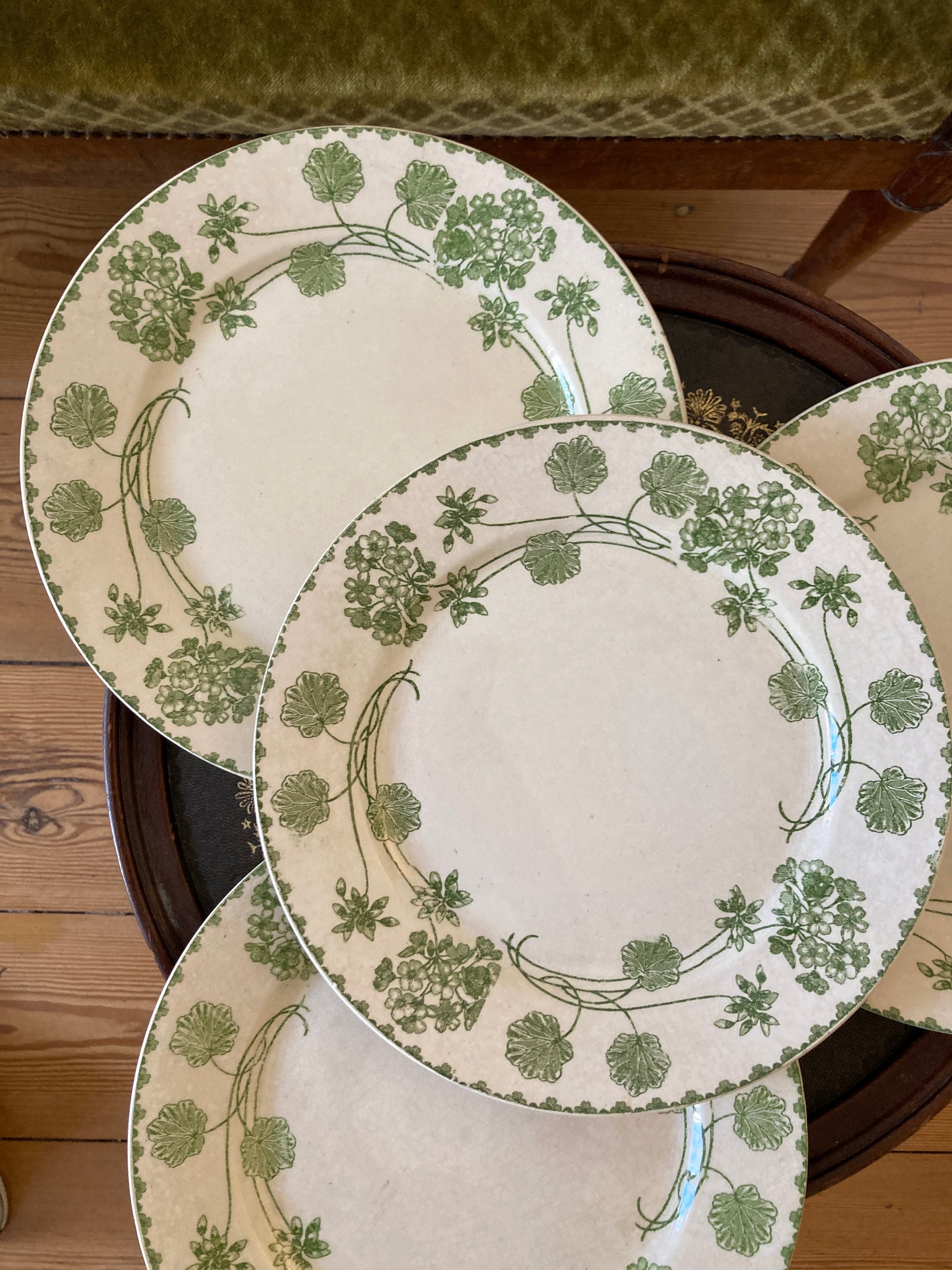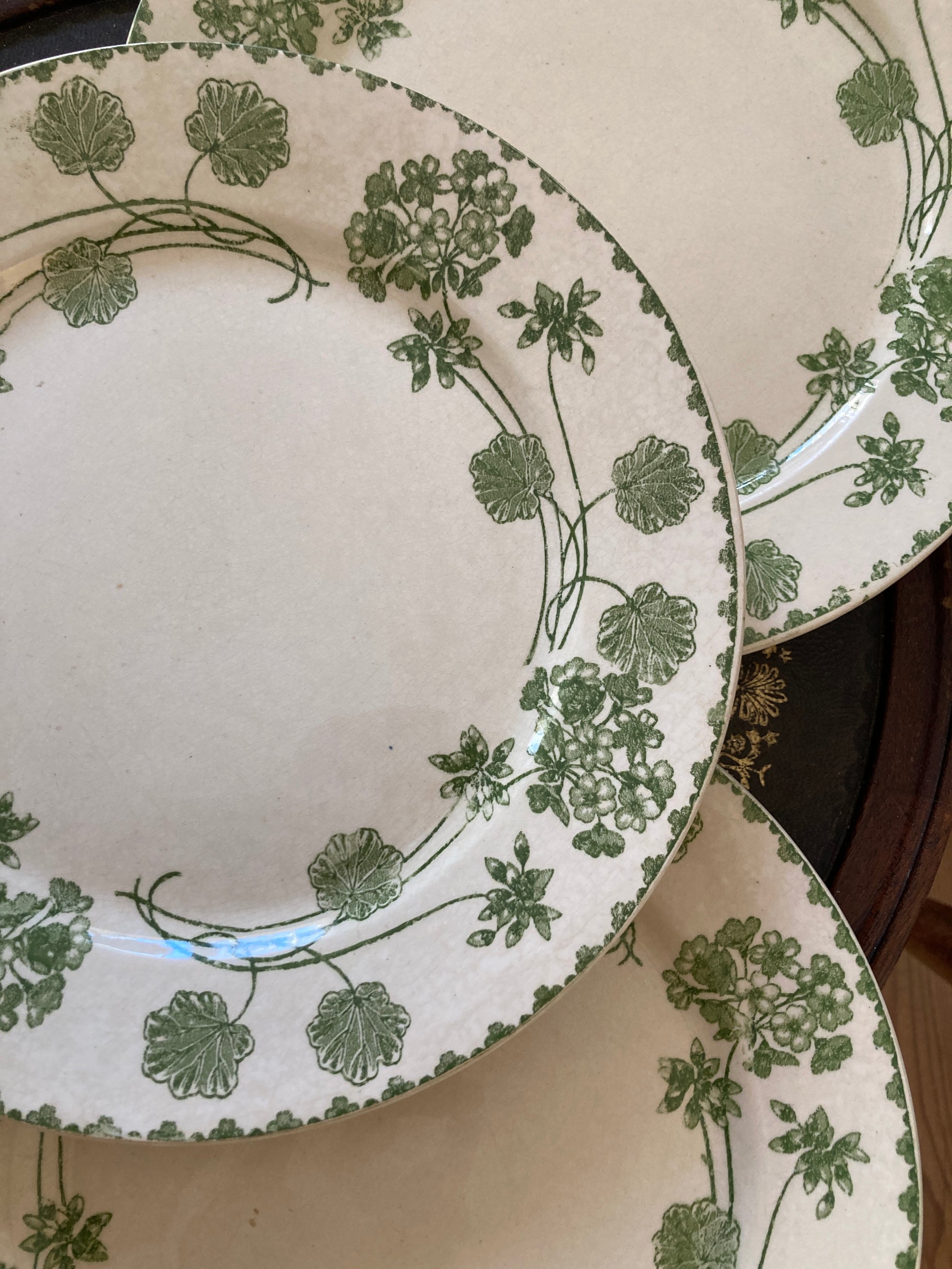 🌿 Set of 4 rare Geranium flat plates from the Sarreguemines factory