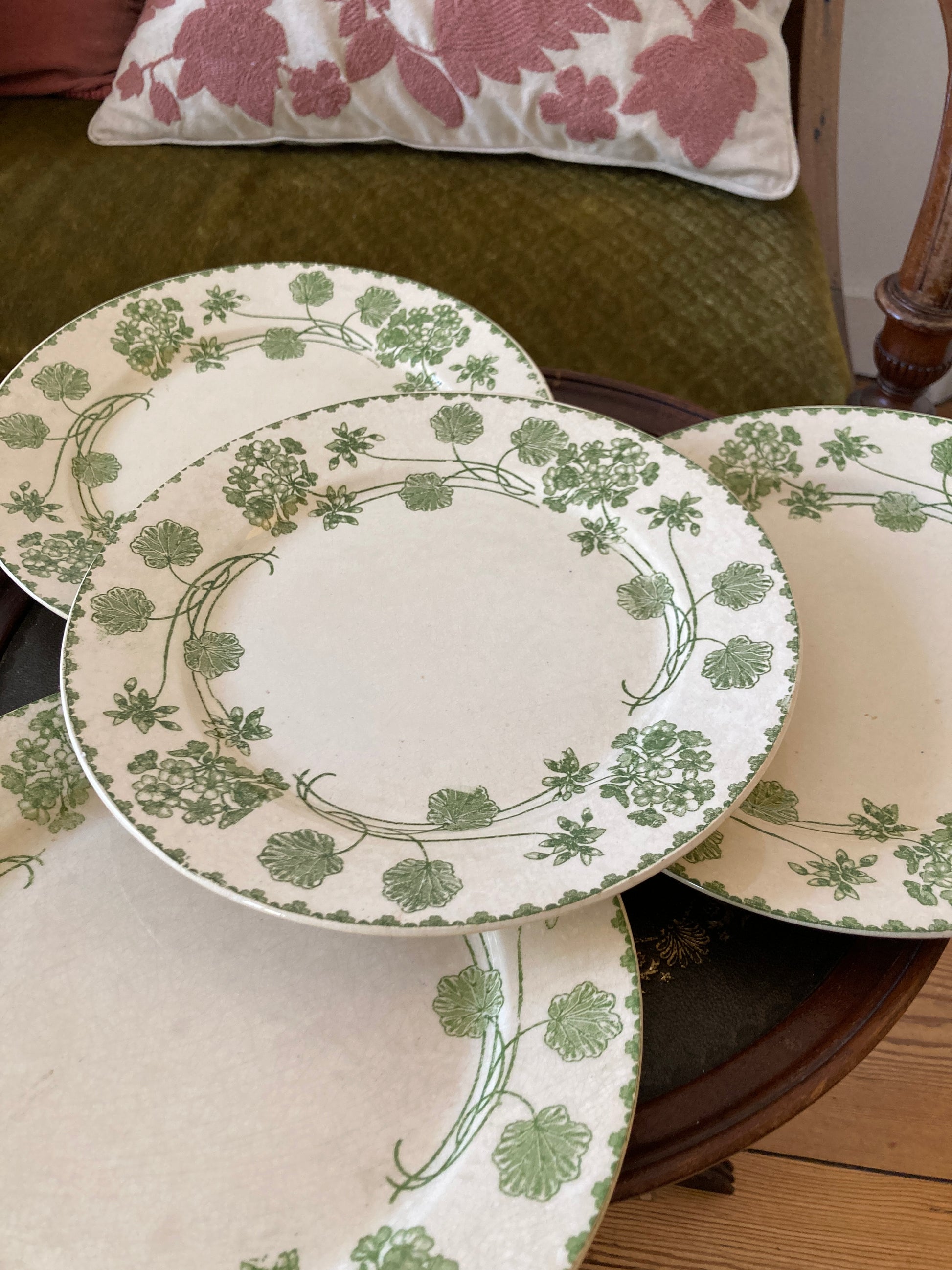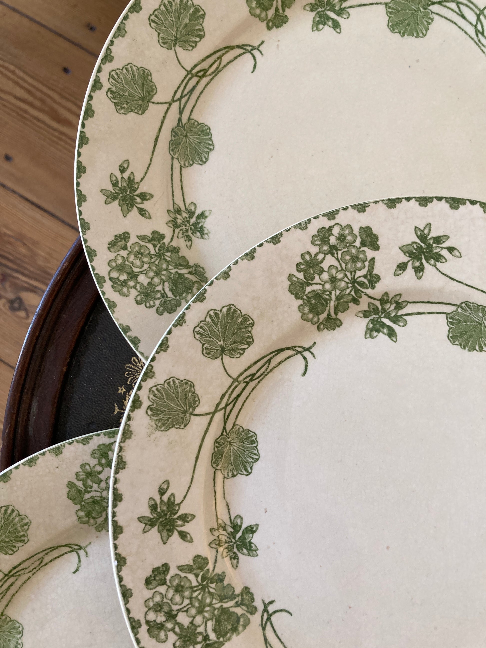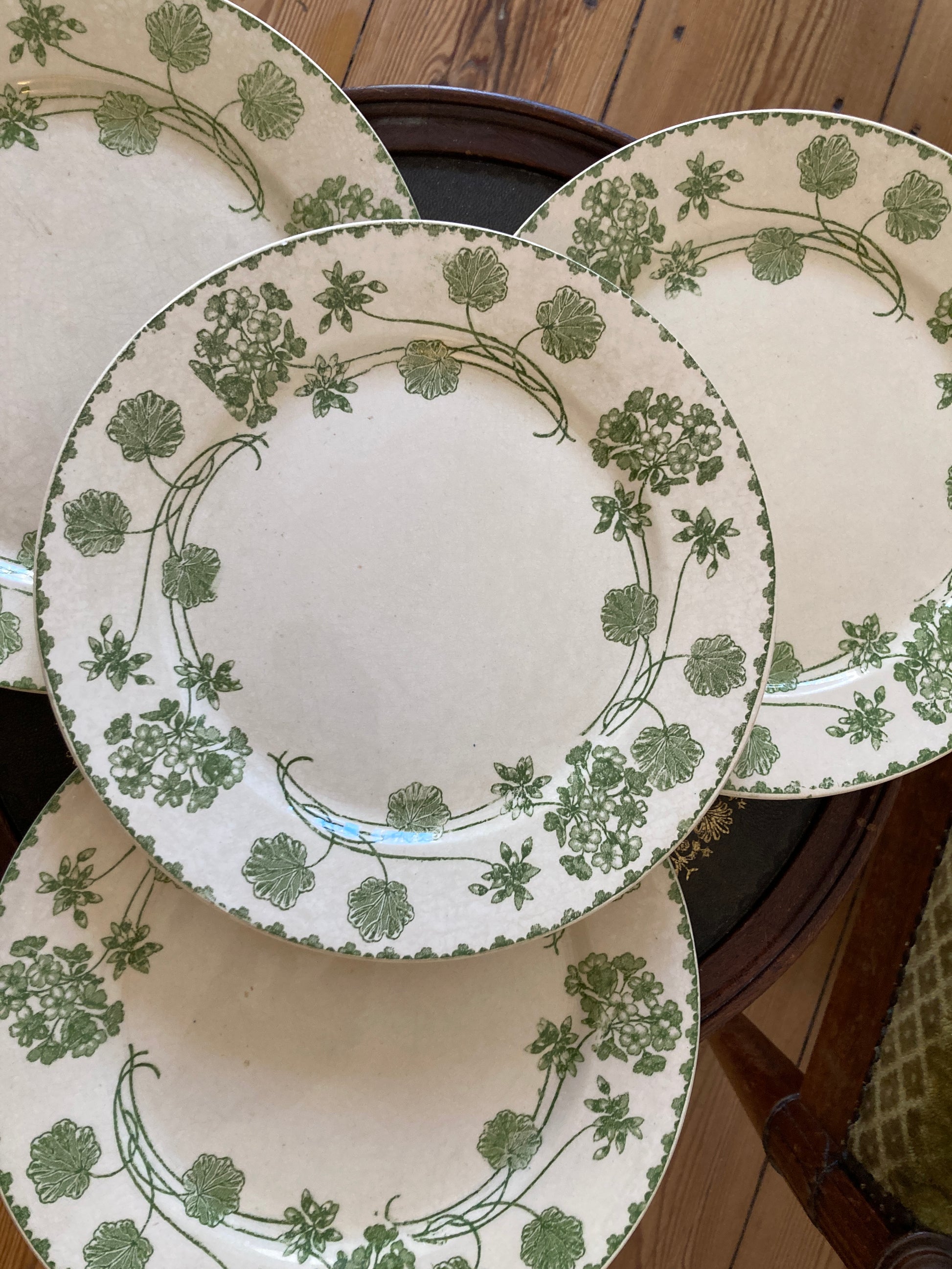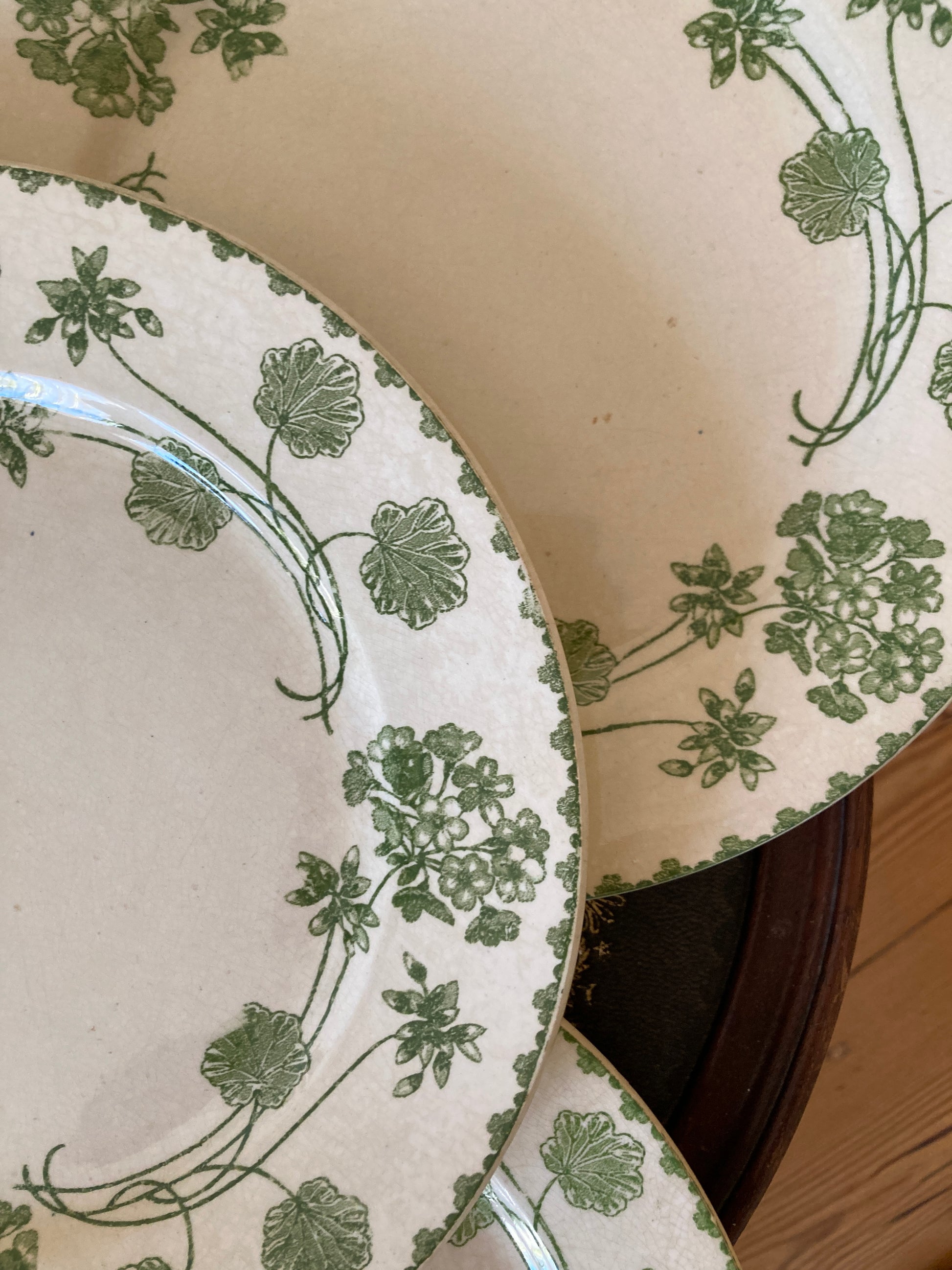 🌿 Set of 4 rare Geranium flat plates from the Sarreguemines factory