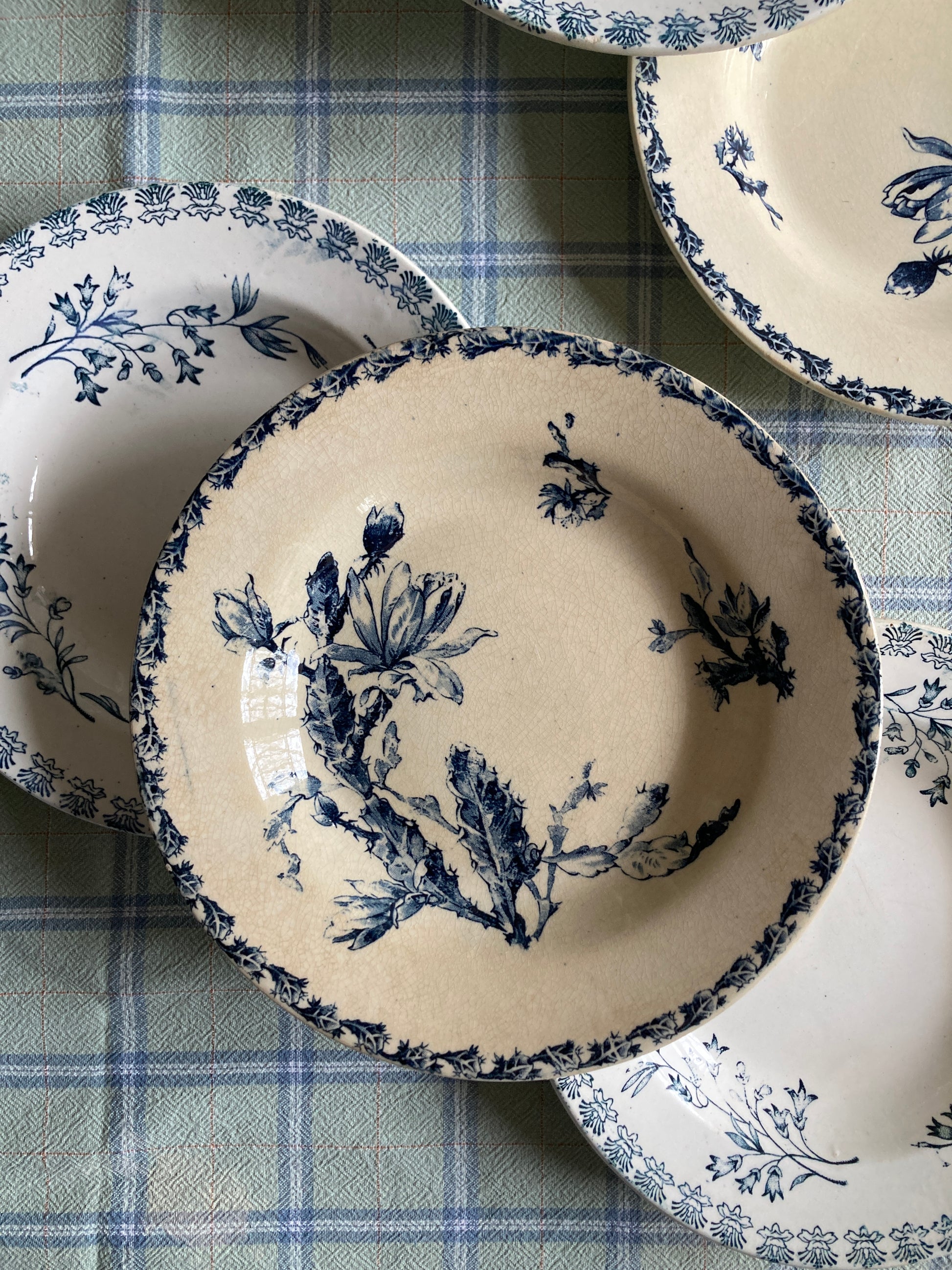 🌿 Composition de 6 assiettes anciennes creuses en Terre de Fer: