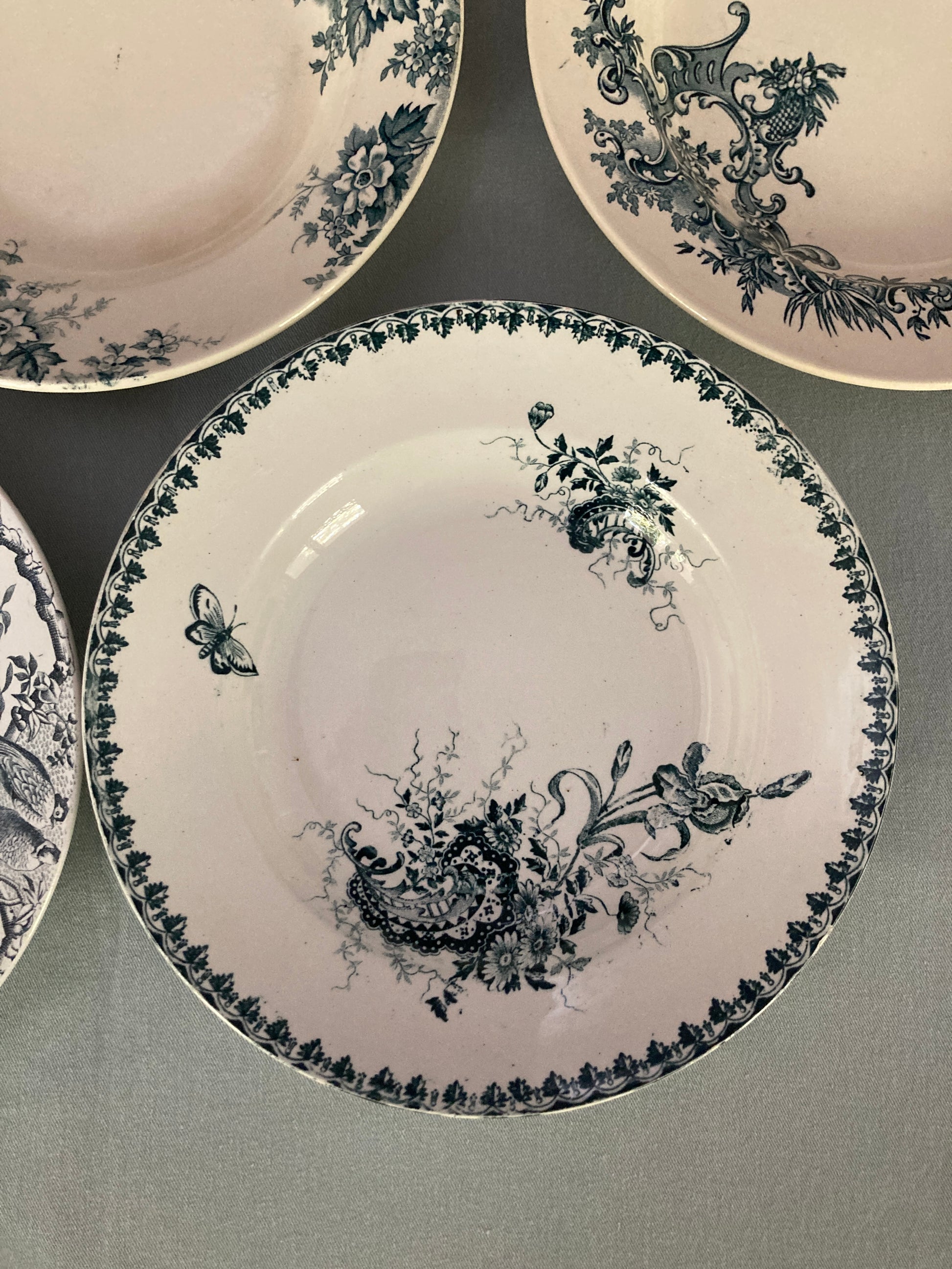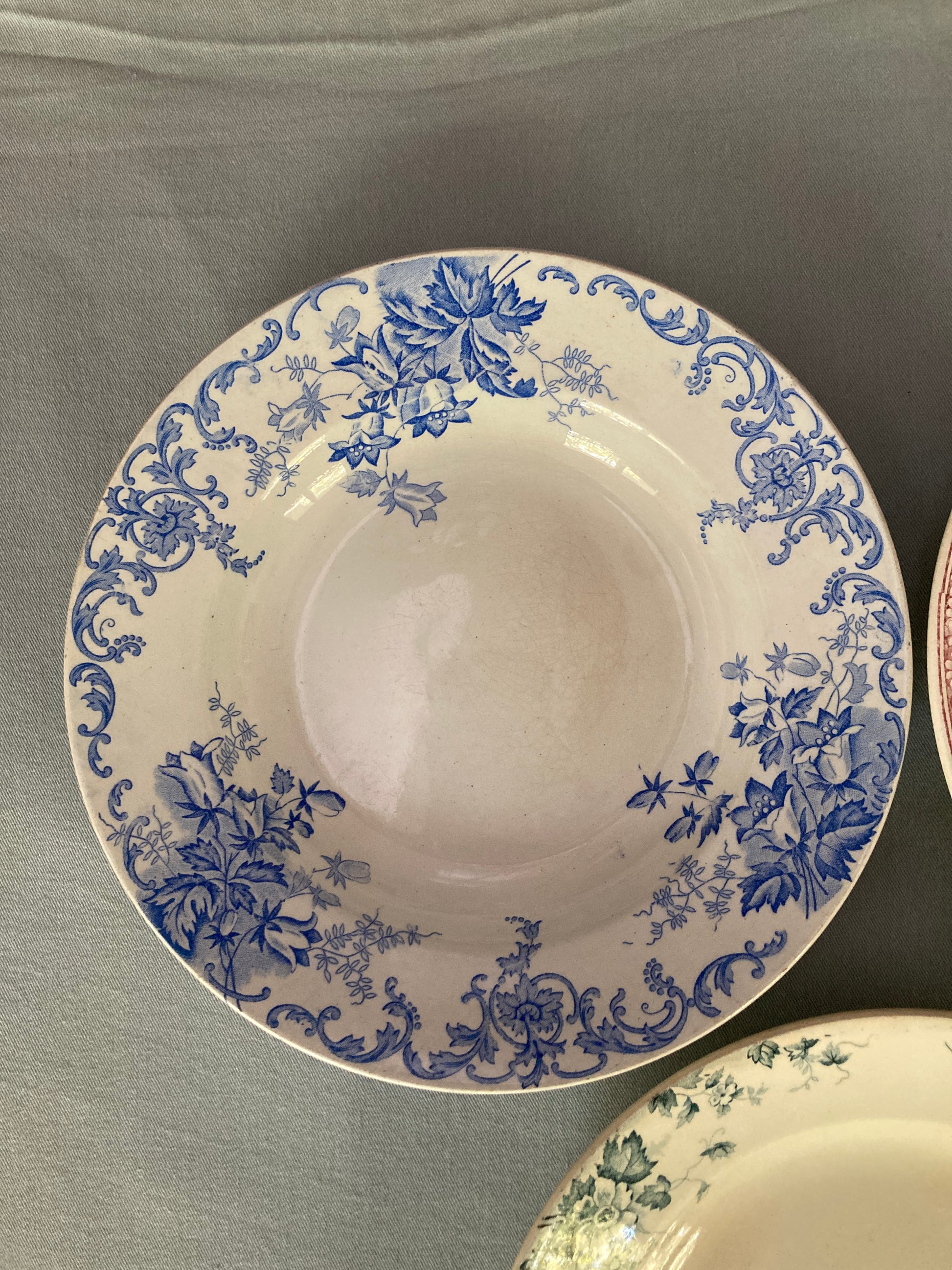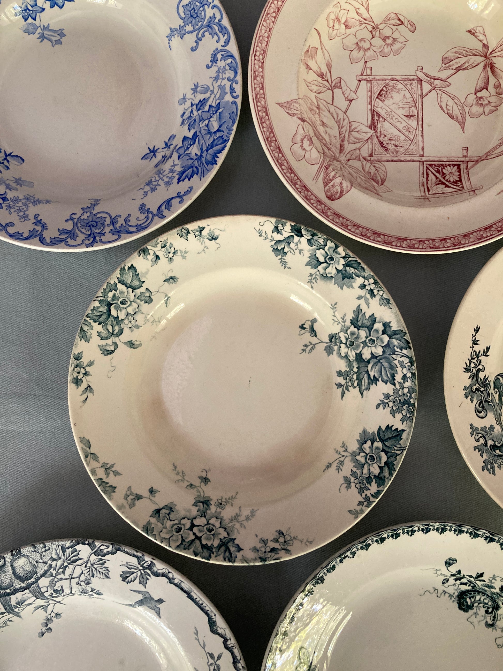 🌿 Composition de 6 assiettes anciennes creuses dépareillées :