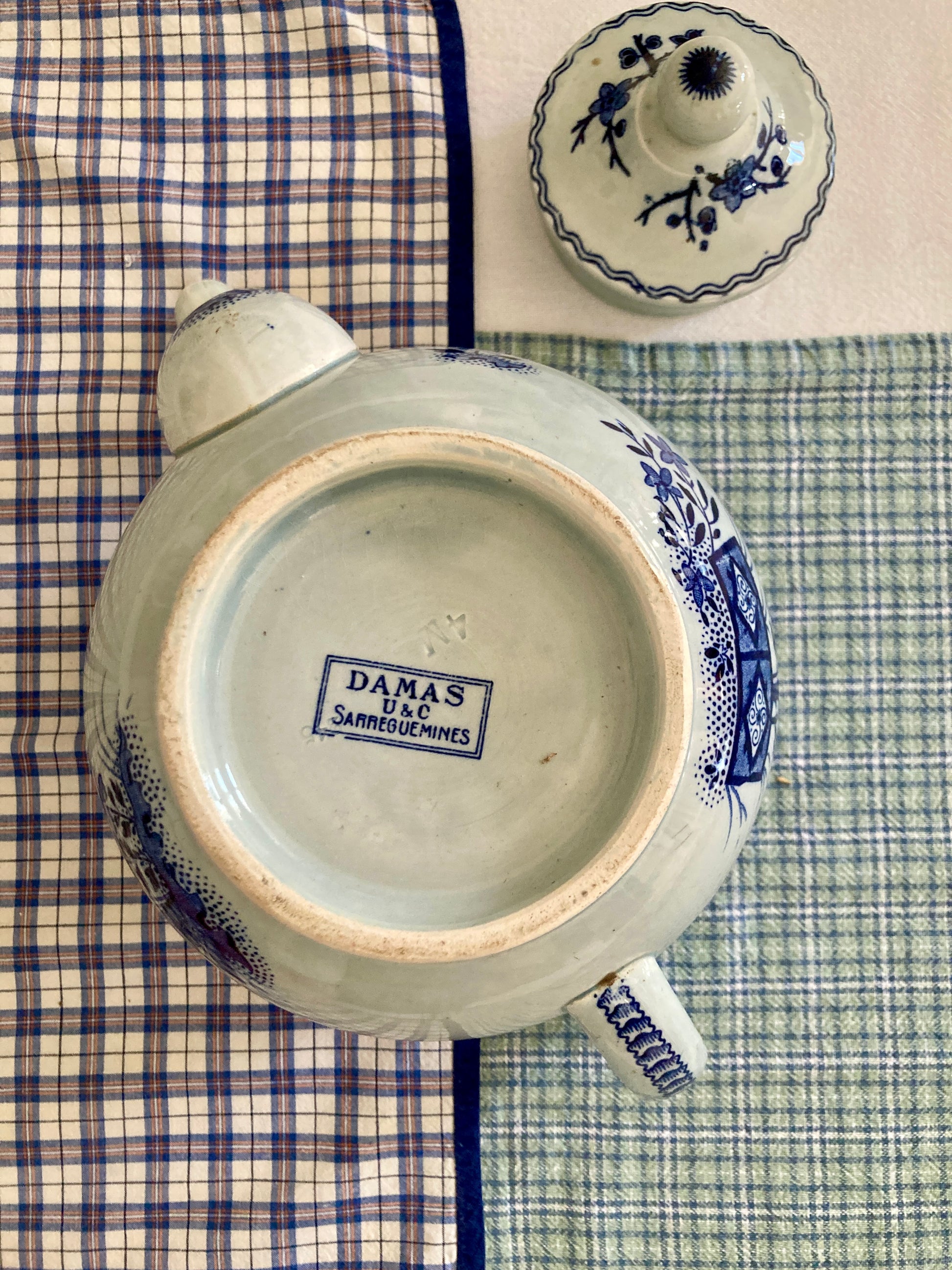 Le service “Damas” est une collection de vaisselle ancienne en Terre de Fer produite par la manufacture de Sarreguemines, une faïencerie française très connue fondée en 1790. Cette manufacture a acquis une réputation internationale au XIXᵉ siècle grâce à la qualité et à la diversité de ses productions, en faïence fine, en grès cérame et majolique.