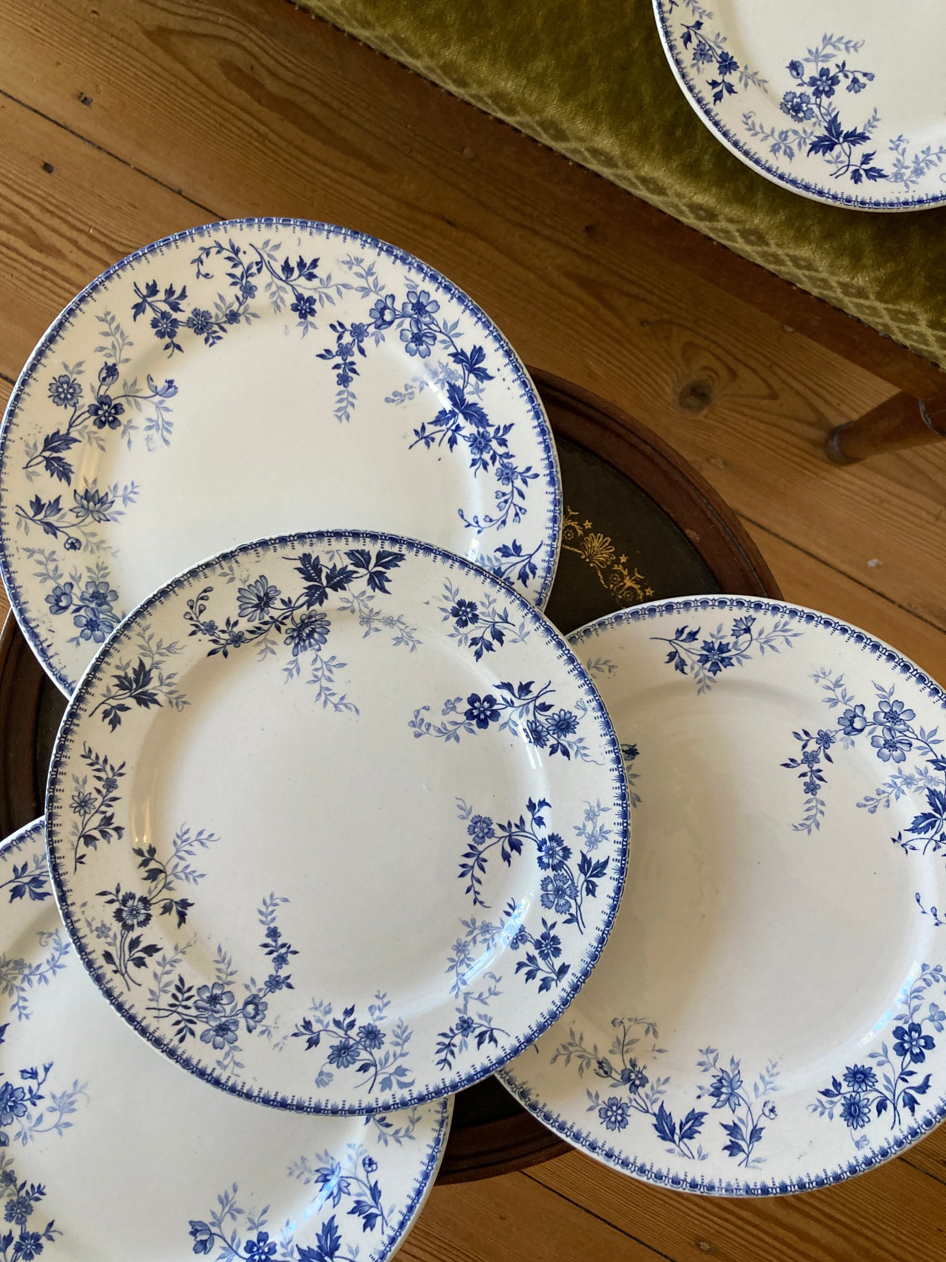 🌿 Lot de 5 Assiettes Anciennes Bleues :