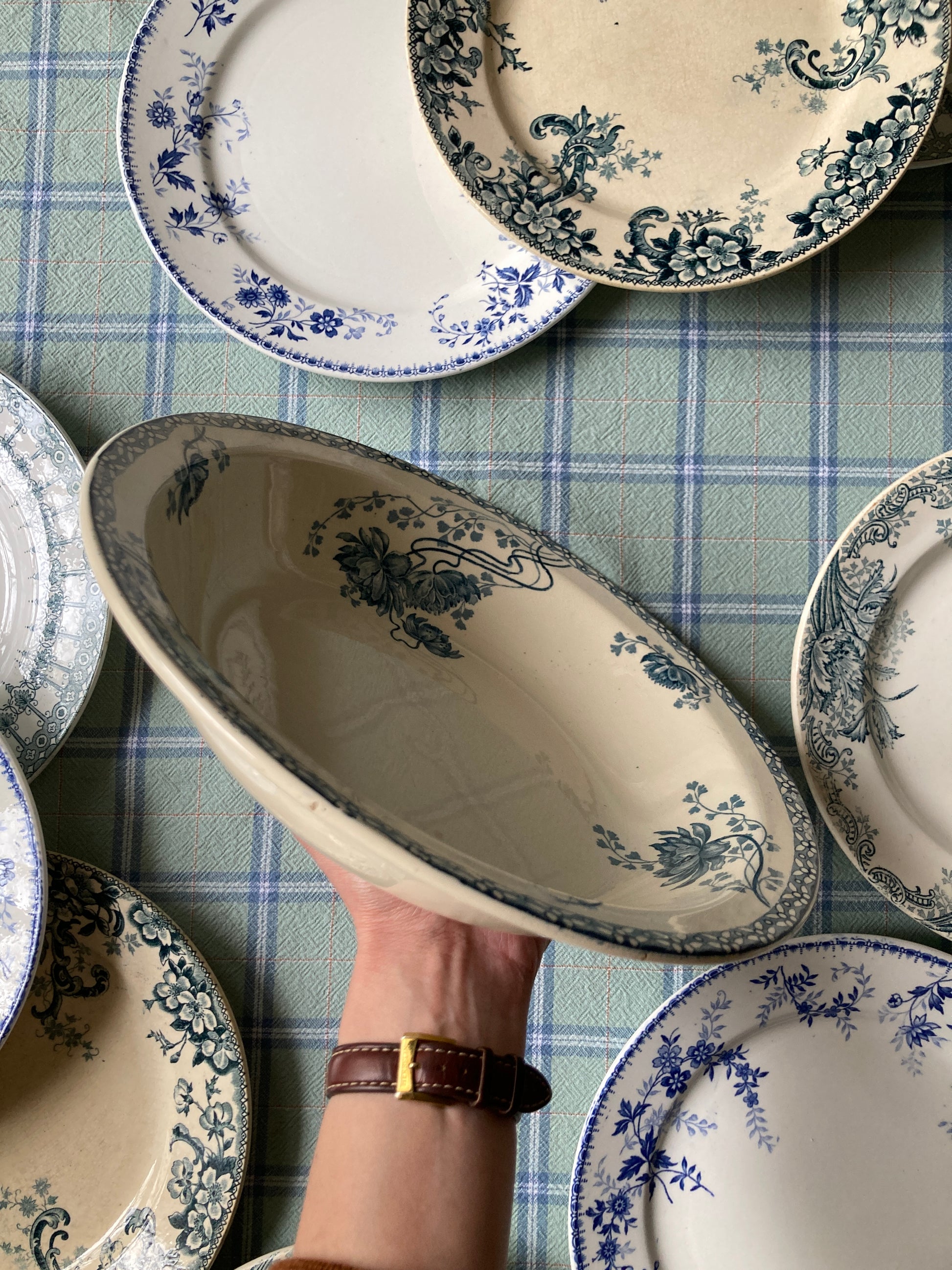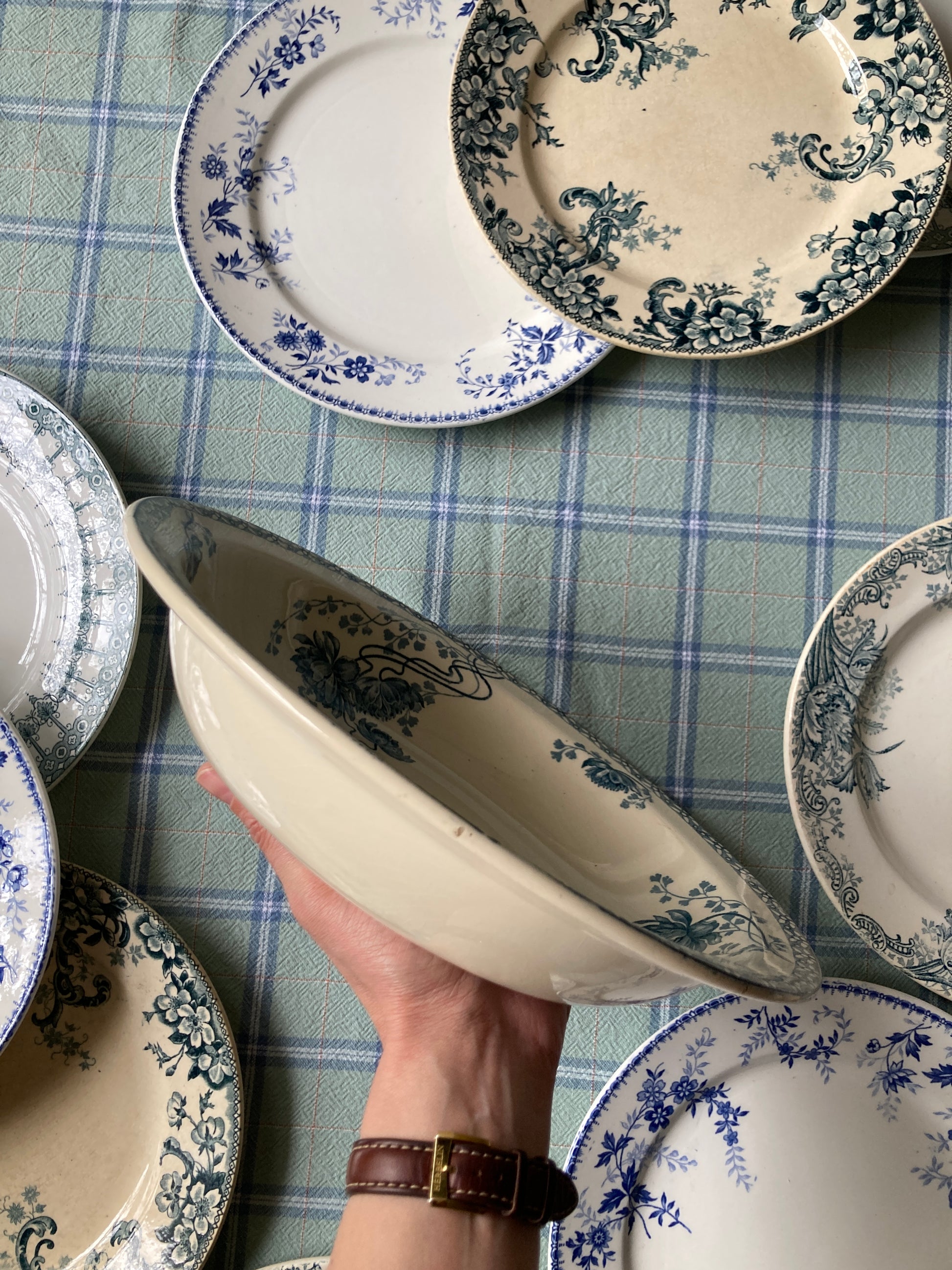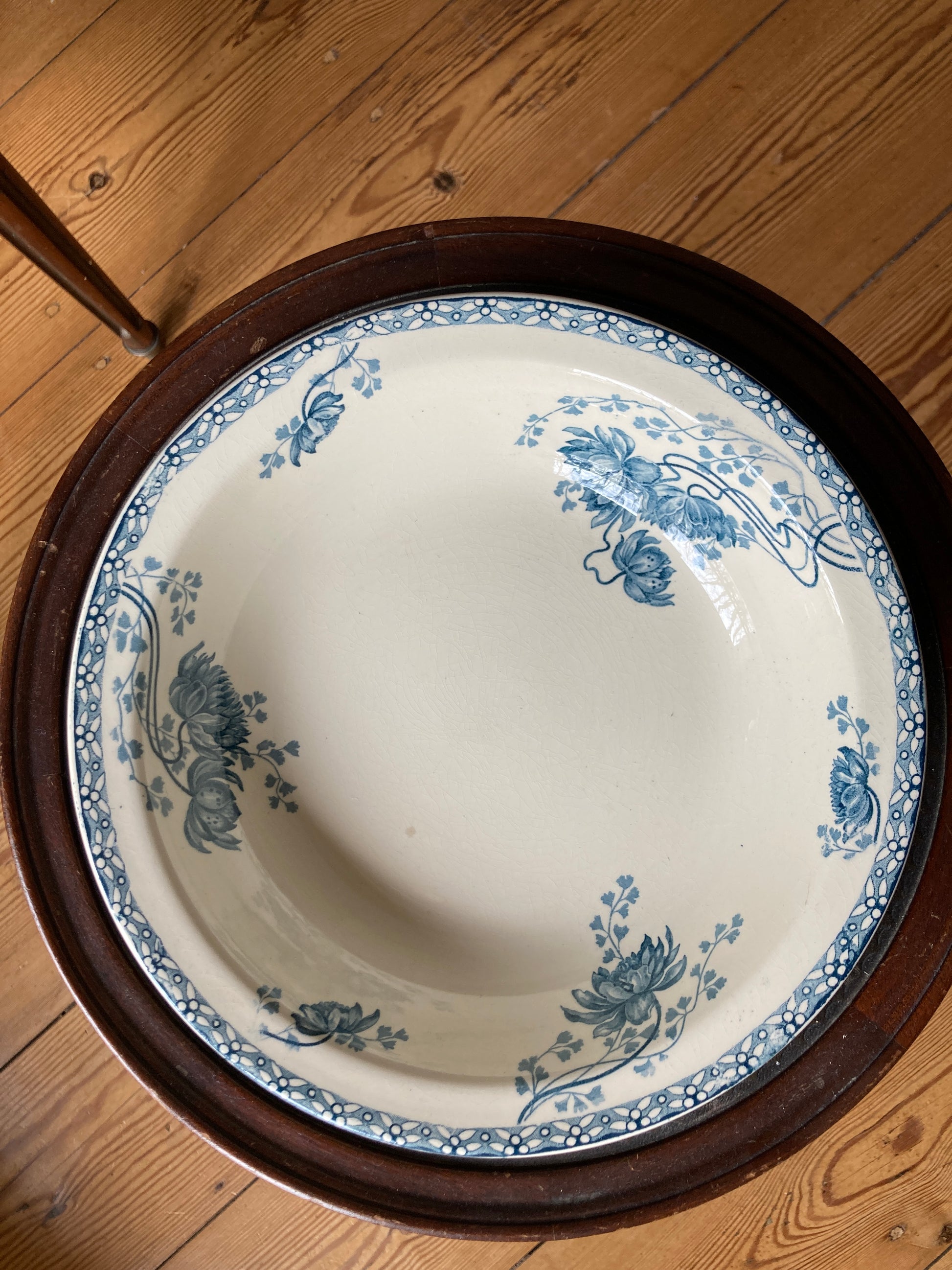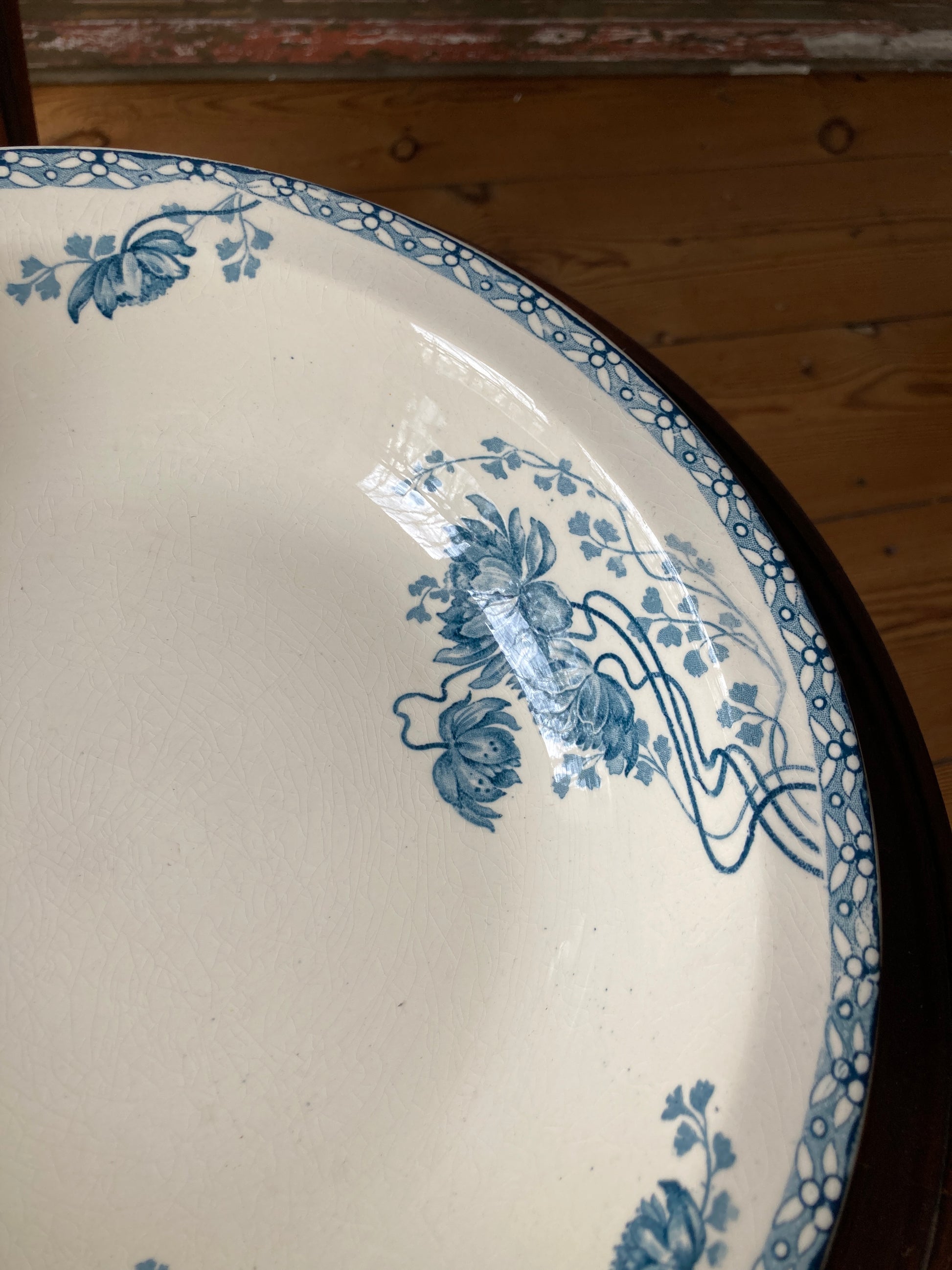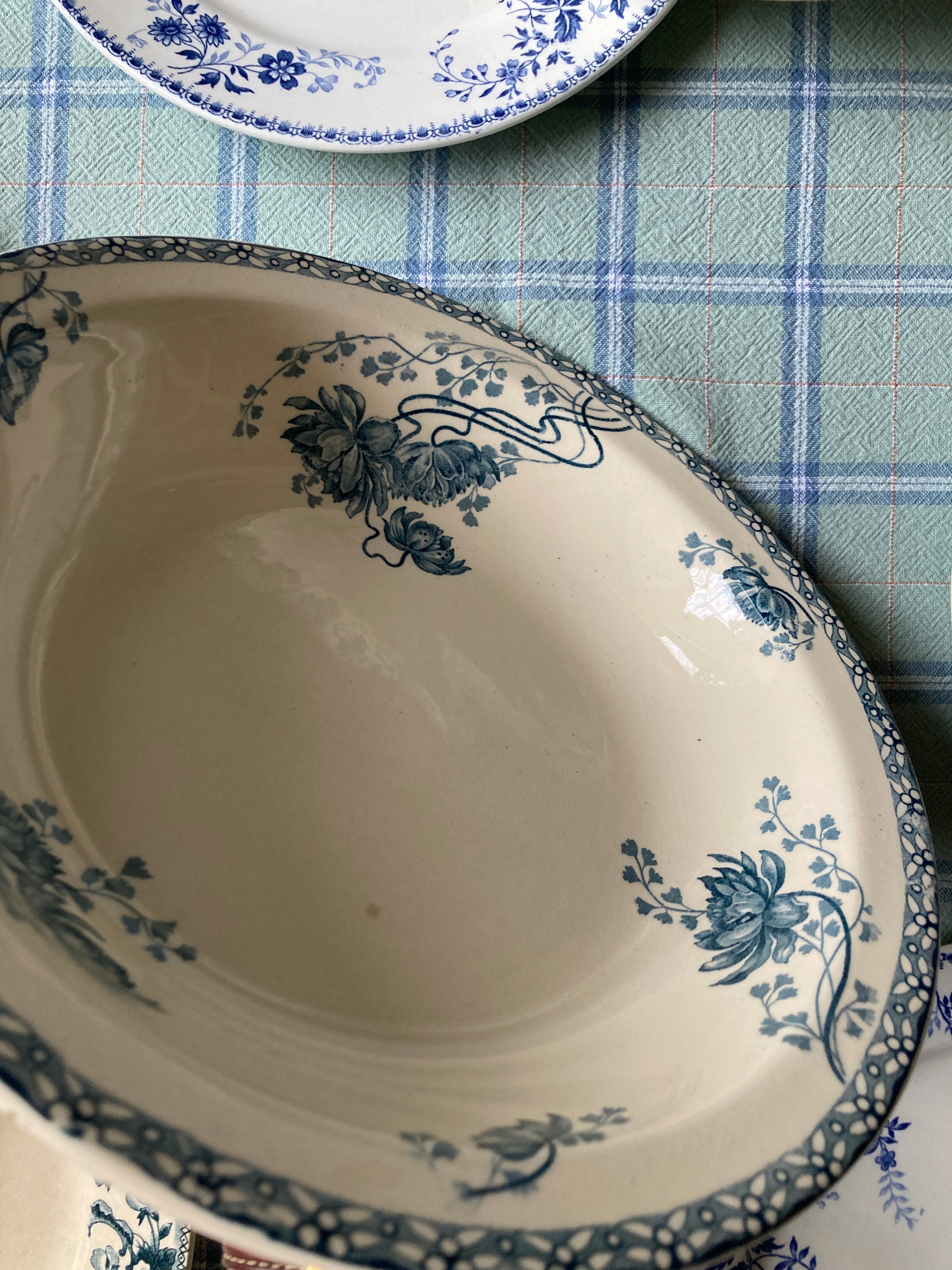 Le service “Royat” de Sarreguemines incarne le savoir-faire et l’esthétique de la faïence française du début du XXᵉ siècle, alliant fonctionnalité et élégance décorative. Il est facilement identifiable par son décor floral bleu sur fond ivoire. Ce motif est inspiré du style naturaliste de l'Art Nouveau du début du XXᵉ siècle.