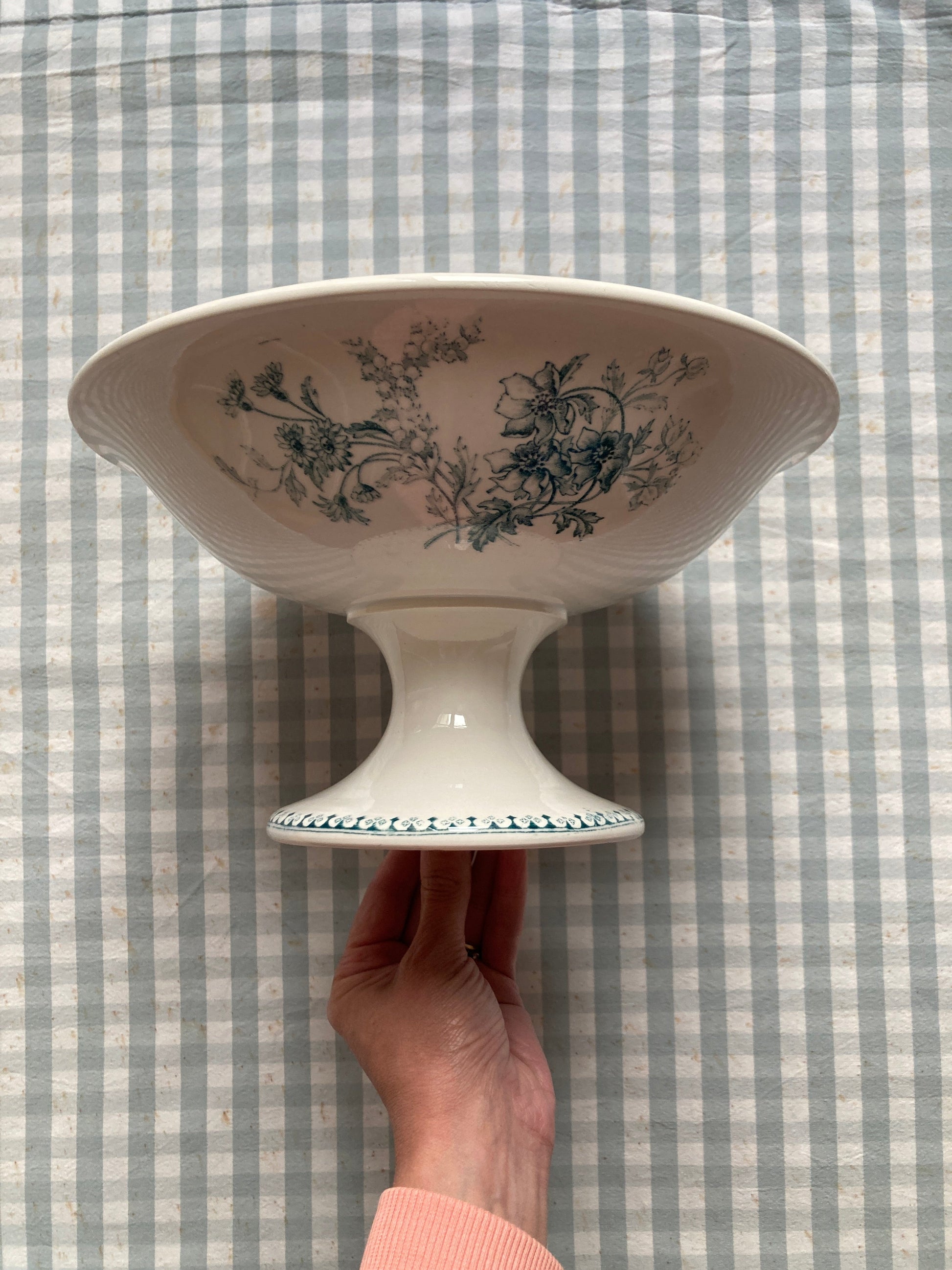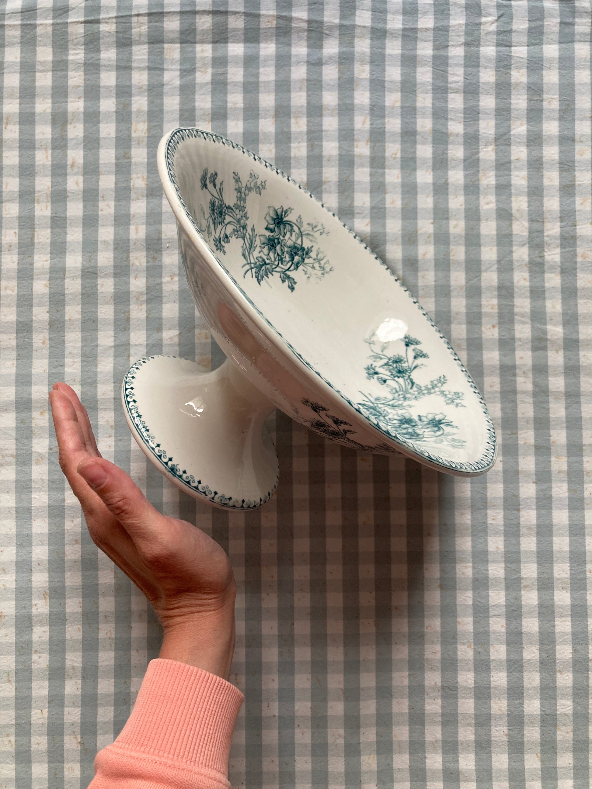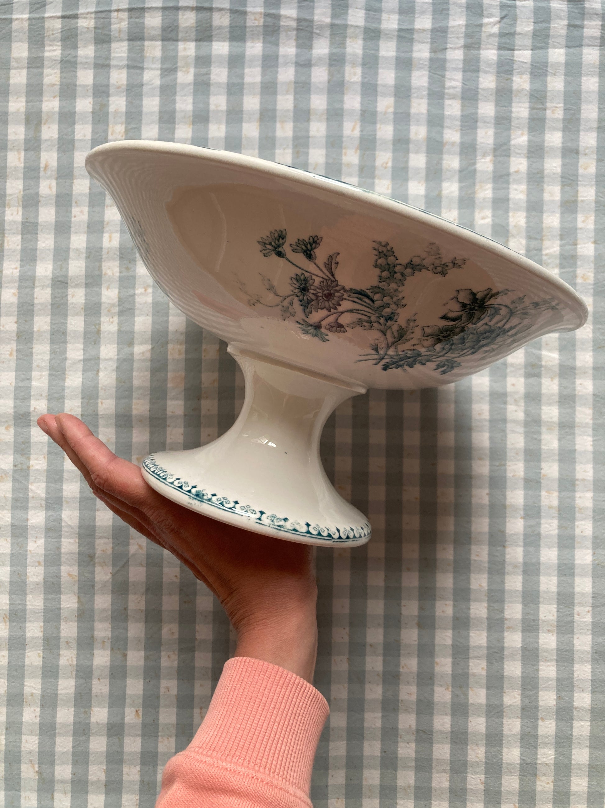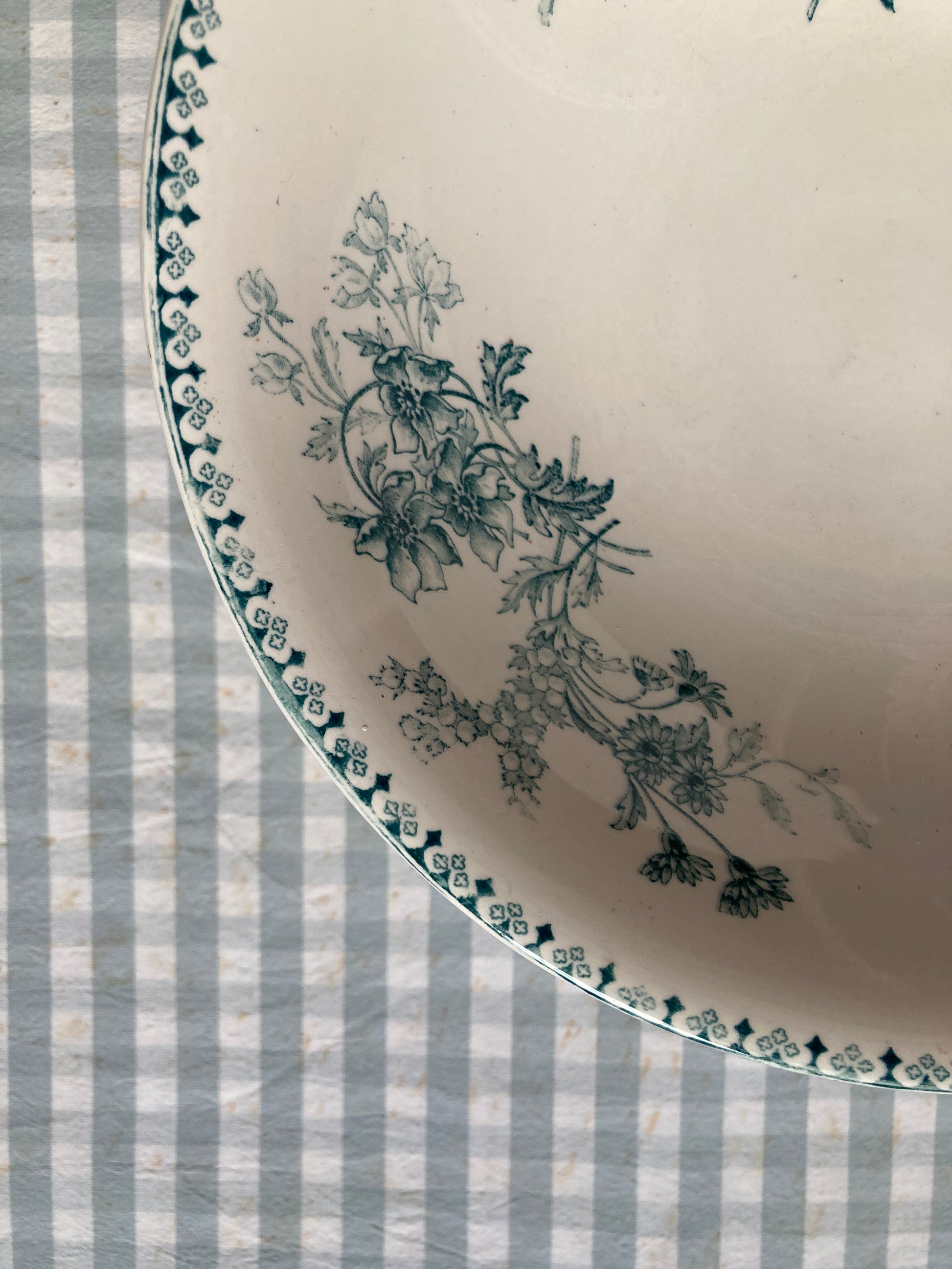 Le modèle « Elvire »est un modèle emblématique de la manufacture deSarreguemines, célèbre pour safaïence fine française. Ce décor se distingue par sonstyle romantique et floral, souvent orné demotifs délicats de fleursdans des tons doux (généralement vert, bleu, rouge ou brun sur fond crème). Produit entre lafin du XIXe et le début du XXe siècle, le service Elvire incarne l'élégance rustique typique de la vaisselle de cette époque.