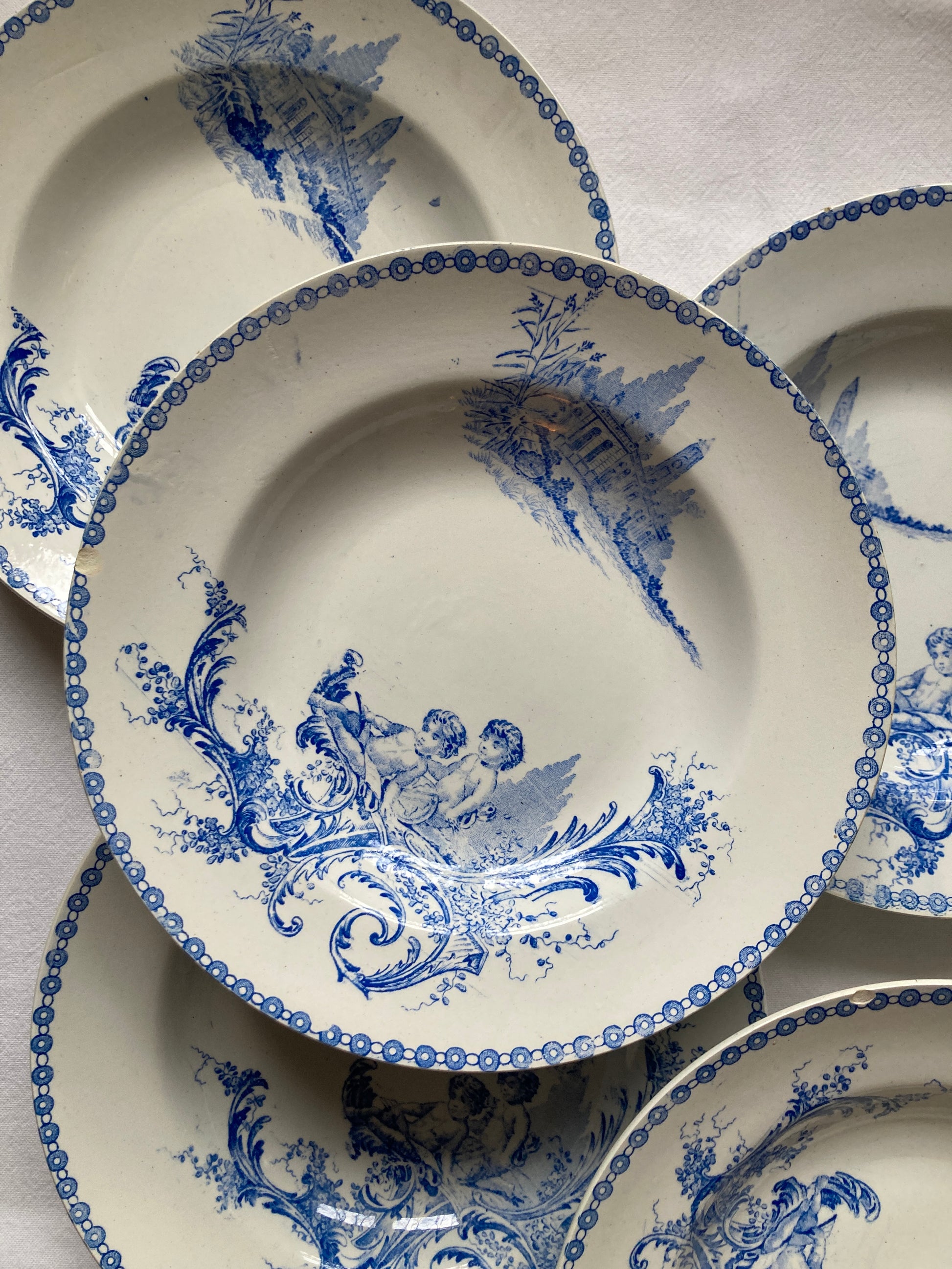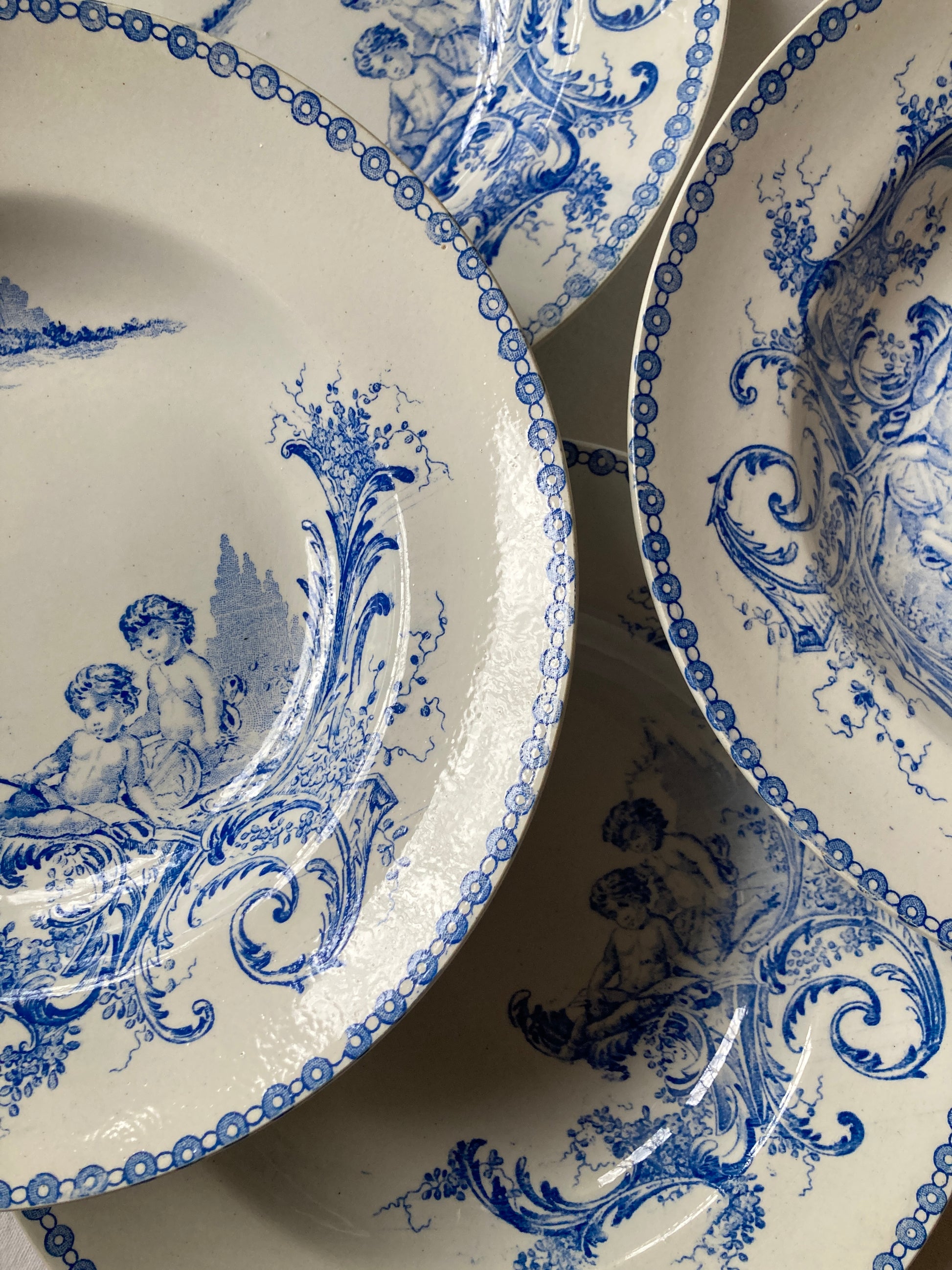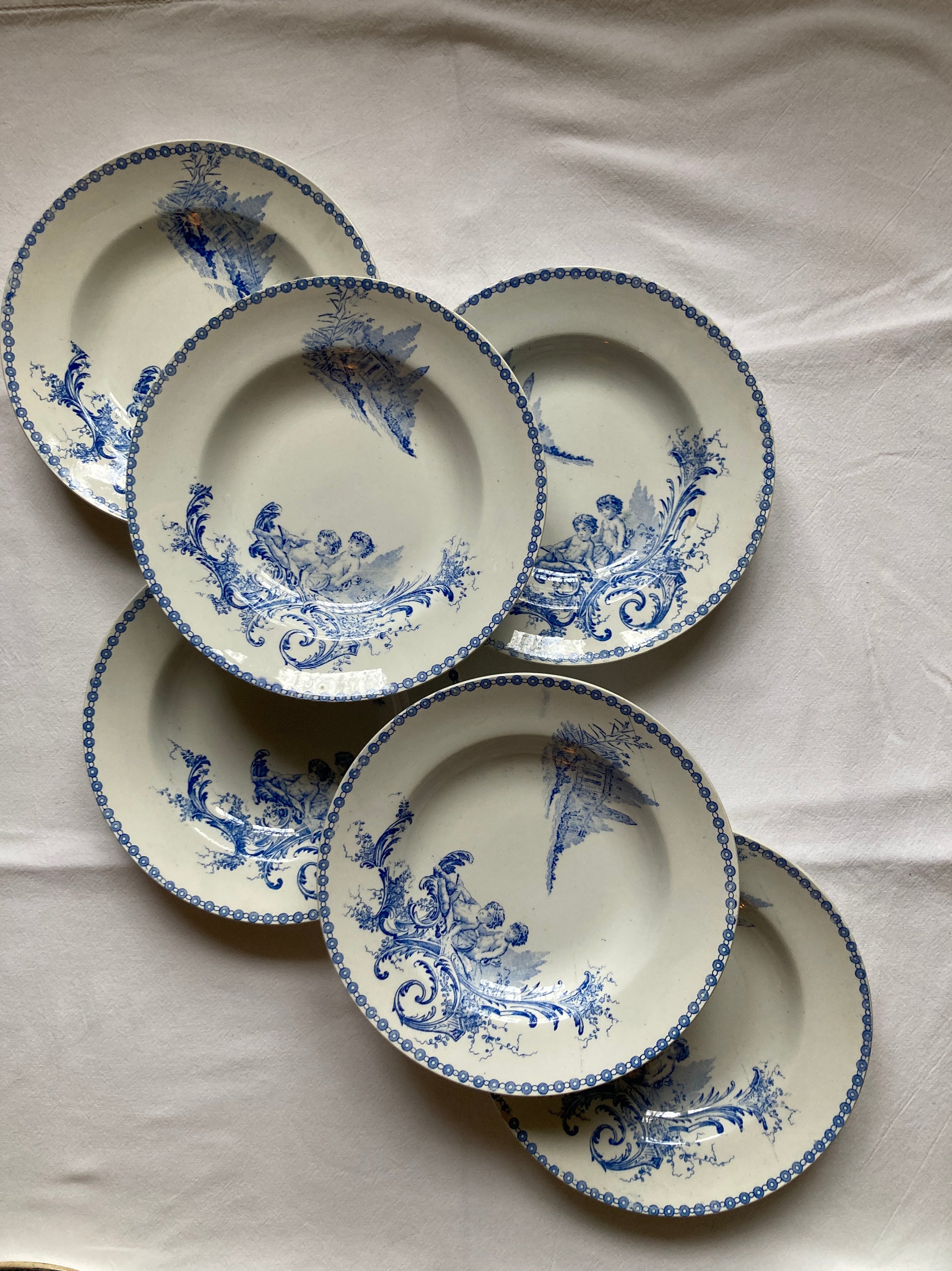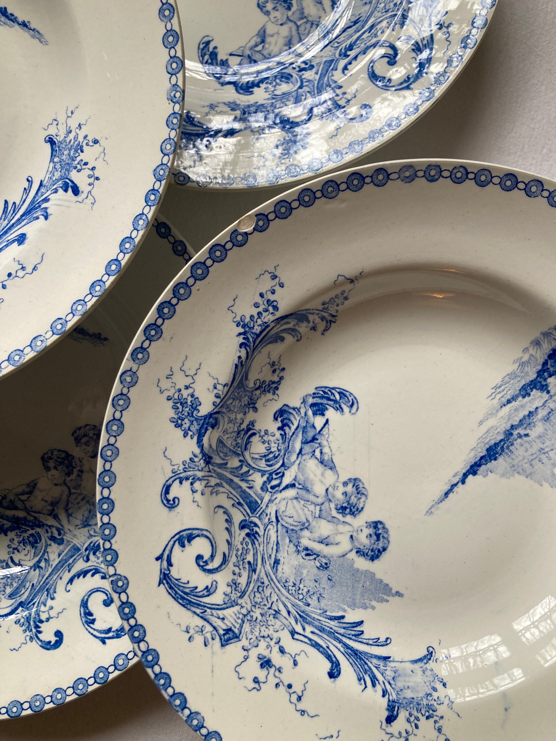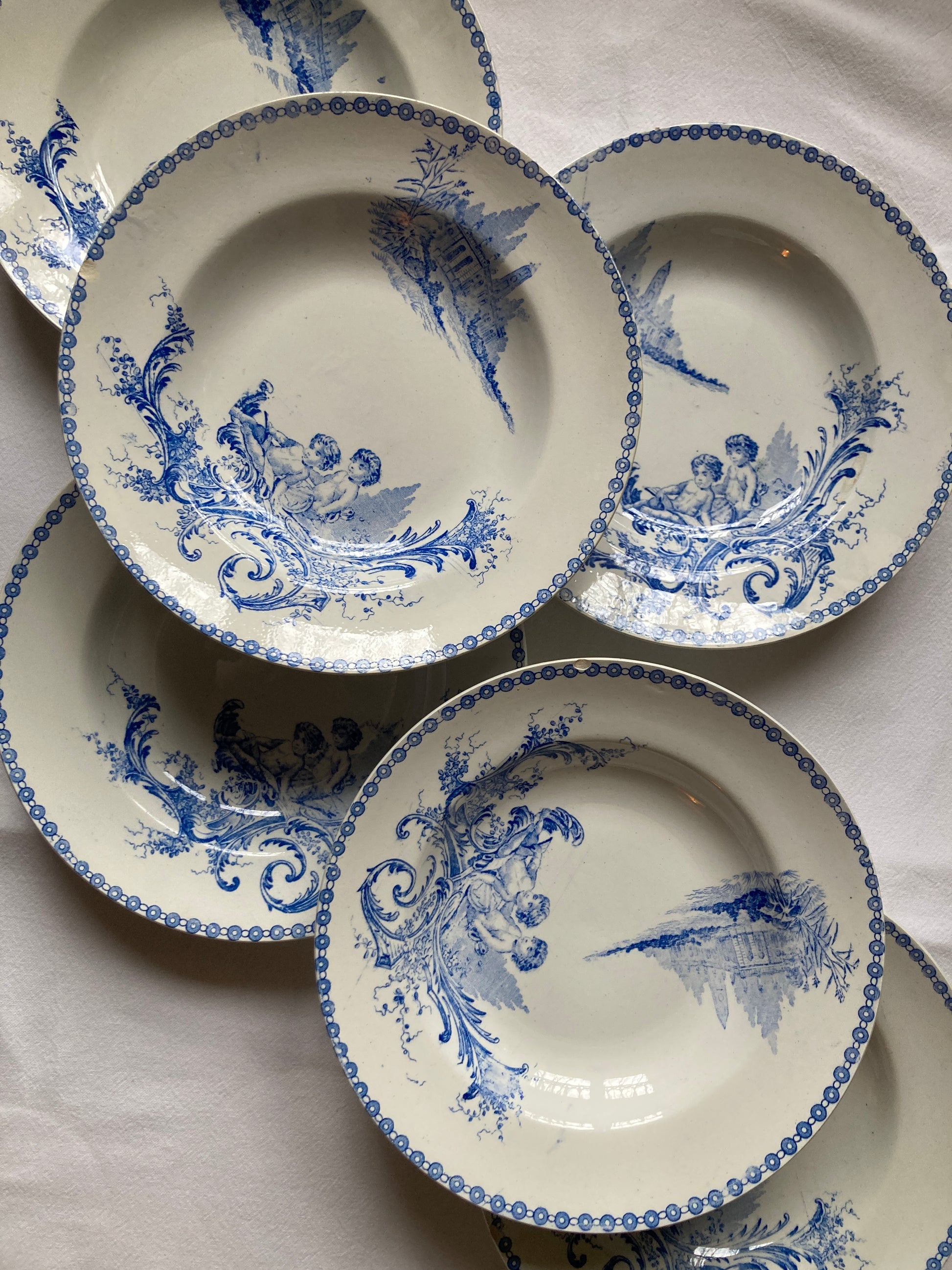 Ensemble composé de 4 assiettes en parfait état et de 2 assiettes avec un léger et discret manque que vous pouvez apercevoir sur les photos 🌿